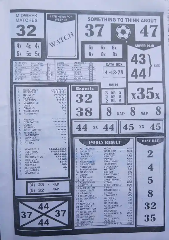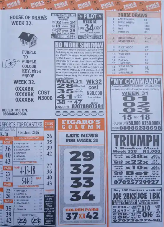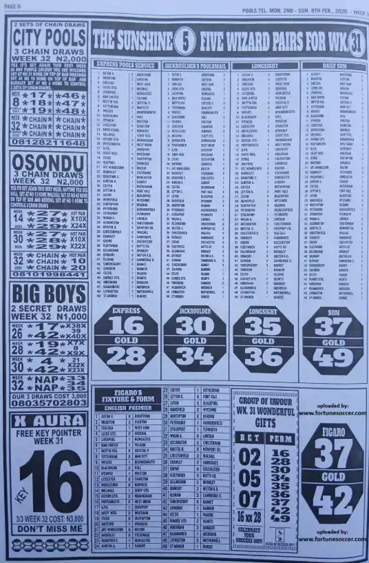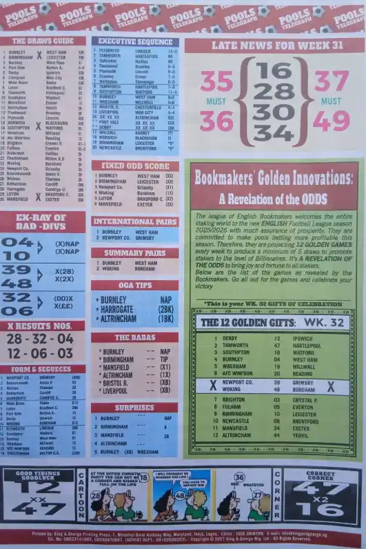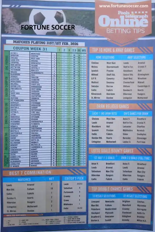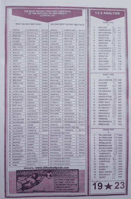You’ll also find Pool Papers from well-known sources like Pools Telegraph, Dream International Research, Fortune ‘X’ Matrix, Special Advance Fixtures, Right On Fixtures, Happy Joe, and Dream International Fixtures. Stay updated with the best resources to enhance your pool predictions!