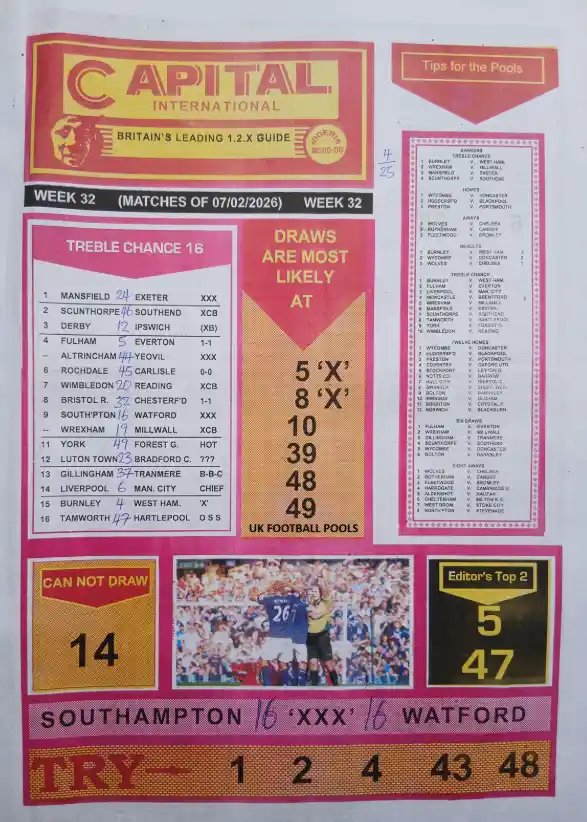 Welcome to the Week 32 RSK Papers for 2026/2027! Here at Results Pools, we bring you the latest RSK papers for this week, including insights from Soccer X Research, Bob Morton, Capital International, WinStar Pool Paper, and Bigwin Soccer Pool Paper.
