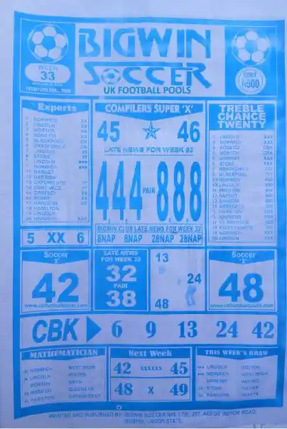 Week 33 Pools RSK Papers 2026: BigWin Soccer, Pool Telegraph, Bob Morton, Capital, Soccer Research