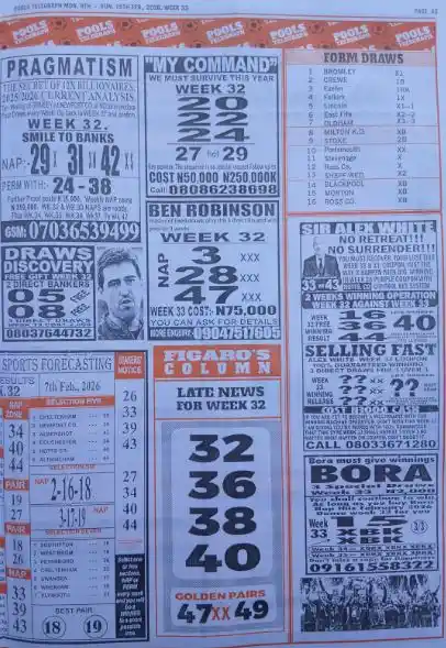 You’ll also find Pool Papers from well-known sources like Pools Telegraph, Dream International Research, Fortune ‘X’ Matrix, Special Advance Fixtures, Right On Fixtures, Happy Joe, and Dream International Fixtures. Stay updated with the best resources to enhance your pool predictions!